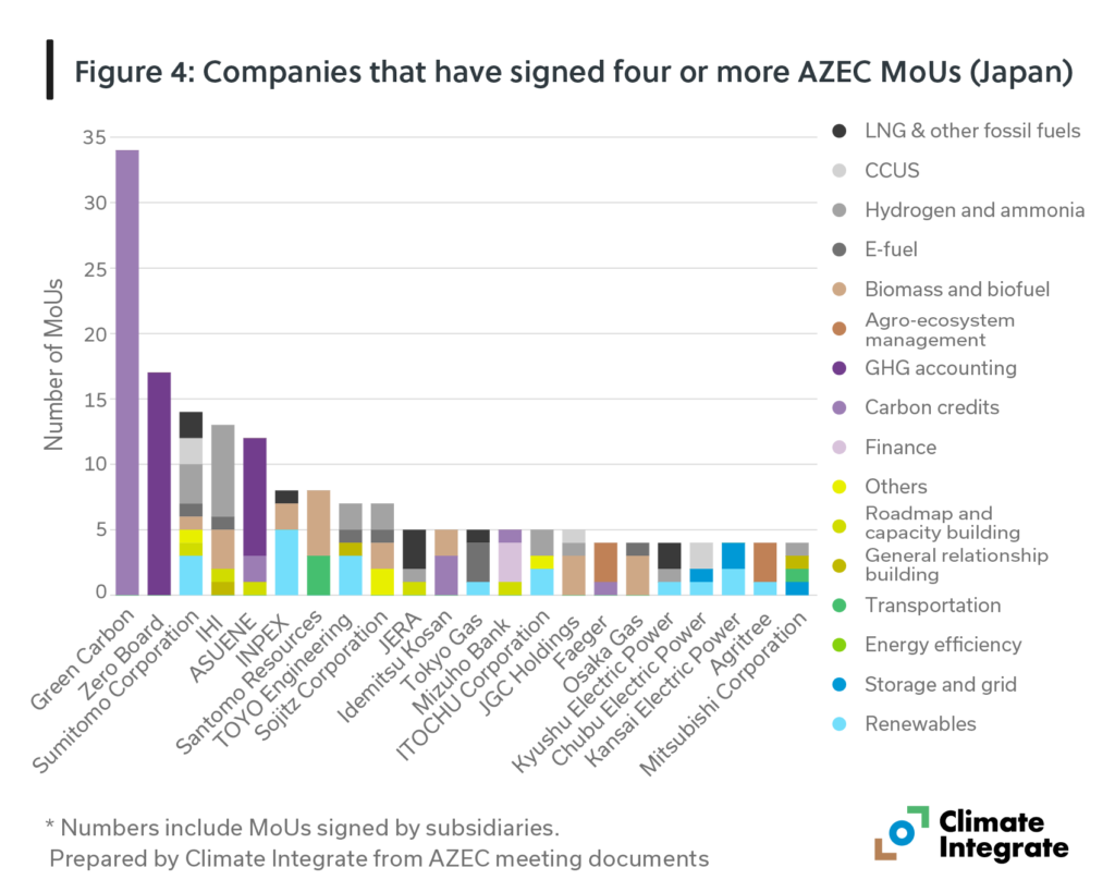 Japanese companies in carbon credits and GHG accounting are associated with the highest number of MoUs in 2025, while hydrogen/ammonia-related activities remain prominent (Figure 4).