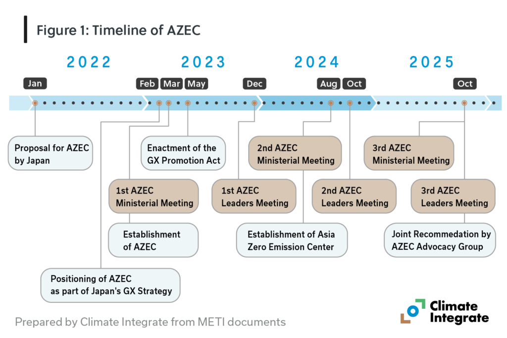 This insight provides an update on AZEC’s developments, focusing on key meetings, institutional evolution, and emerging cooperation trends observed in 2025. It builds on our report, What’s AZEC? published in July 2025, which examined the establishment of AZEC, its positioning within Japan’s Green Transformation (GX) strategy, and trends with the Memorandums of Understanding (MoUs) up to 2024. In addition, an overview of AZEC’s background, governance structure, and early implementation can also be found in the report.