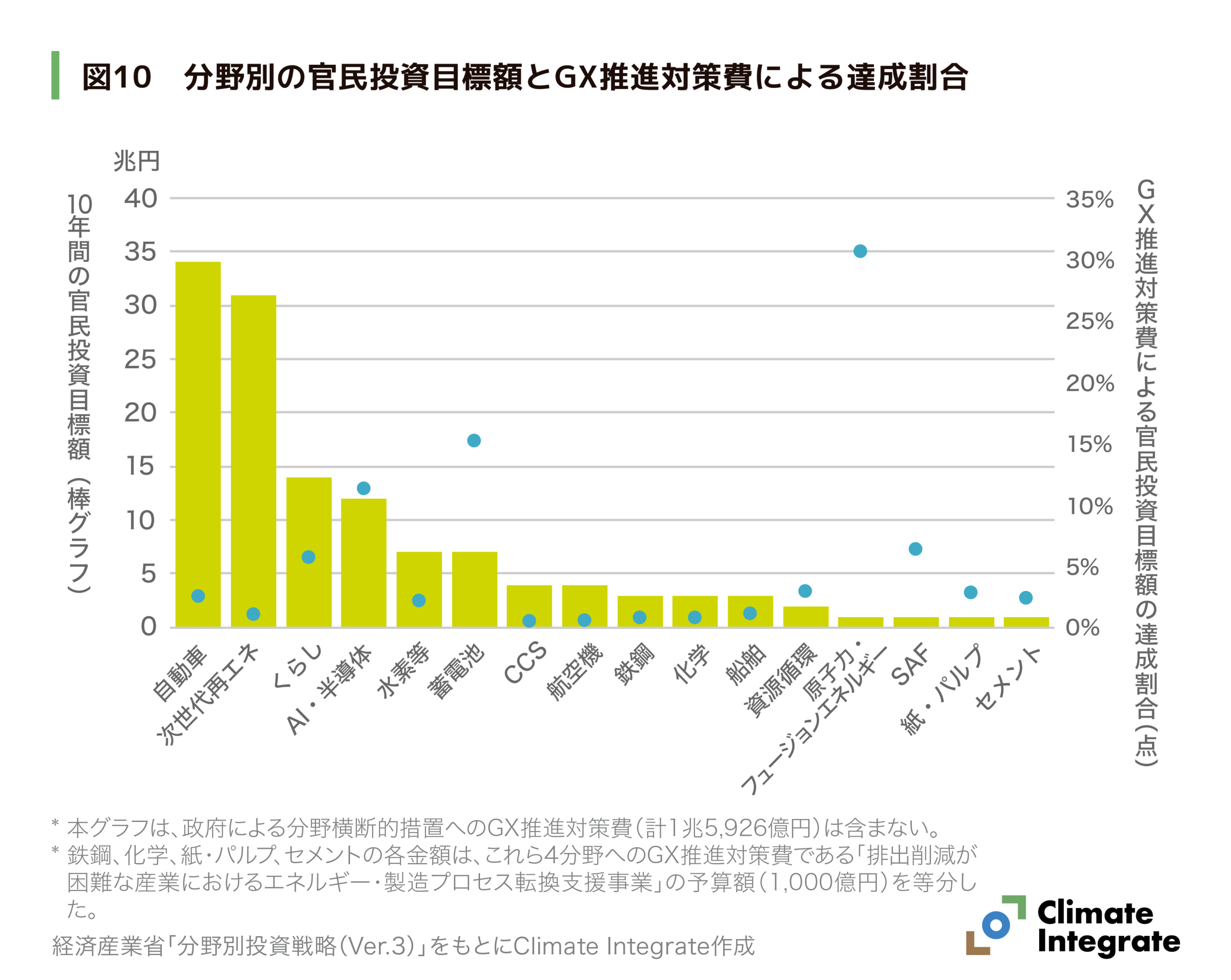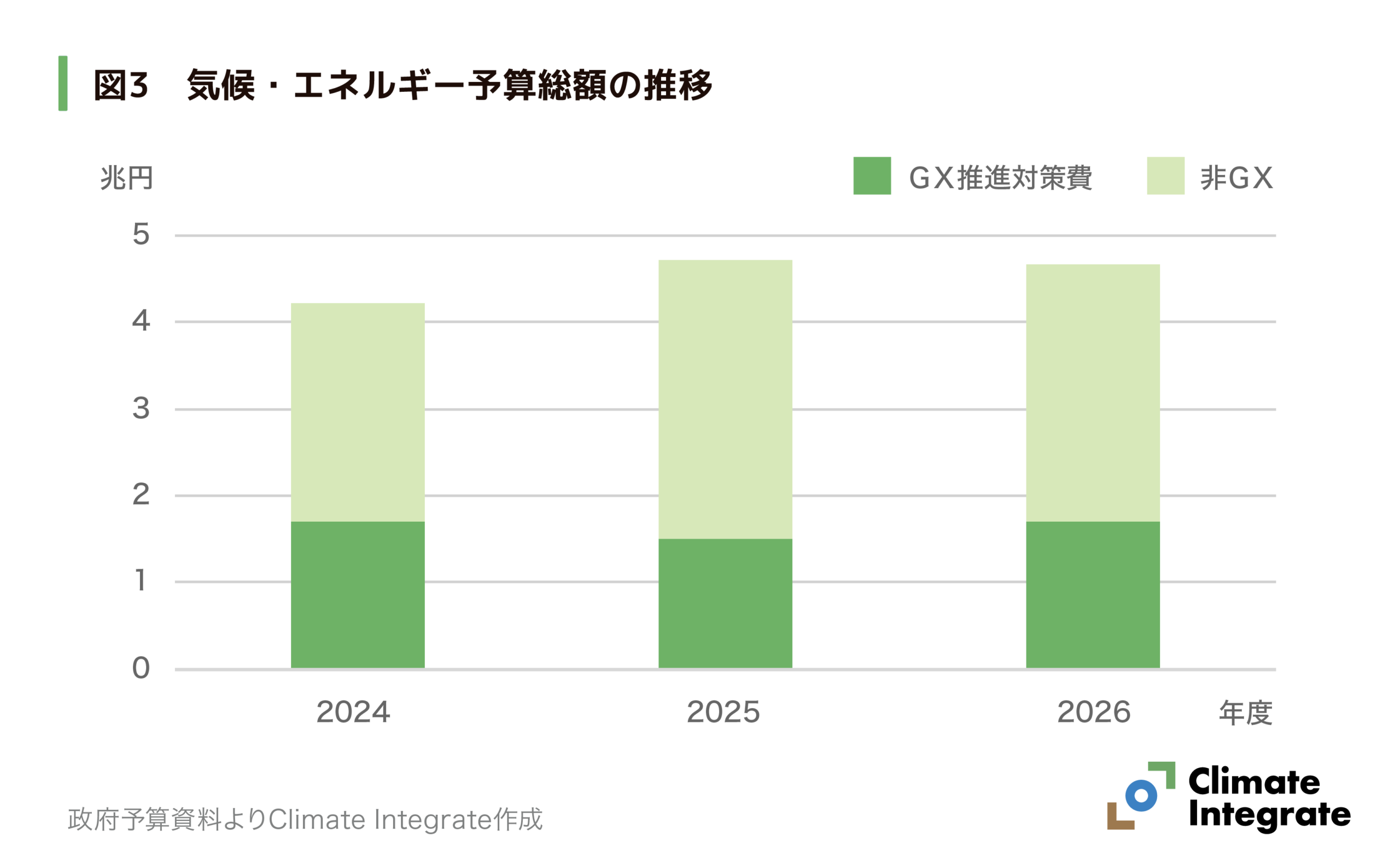 GX投資については、政府が2032年度までに20兆円の先行投資を約束する中、2026年度までのGX推進対策費総額は6.5兆円となっています。また、クライメート・トランジション利付国債は、投資家からの需要が減少しています。